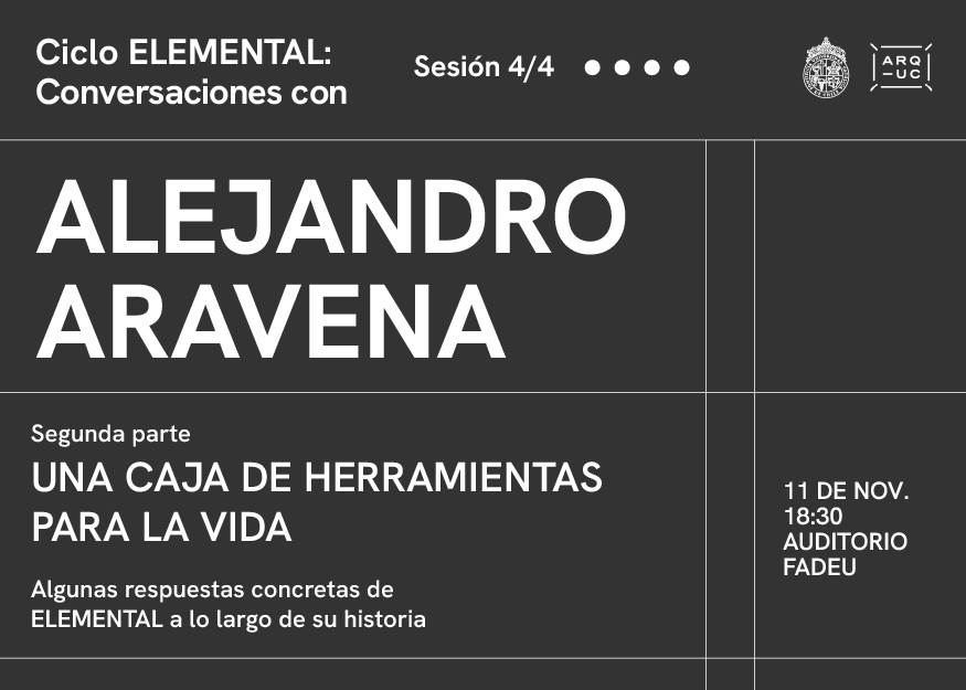 Cuarta y última sesión del "Ciclo ELEMENTAL", dictada por el arquitecto, profesor ARQ UC y premio Pritzker Alejandro Aravena.