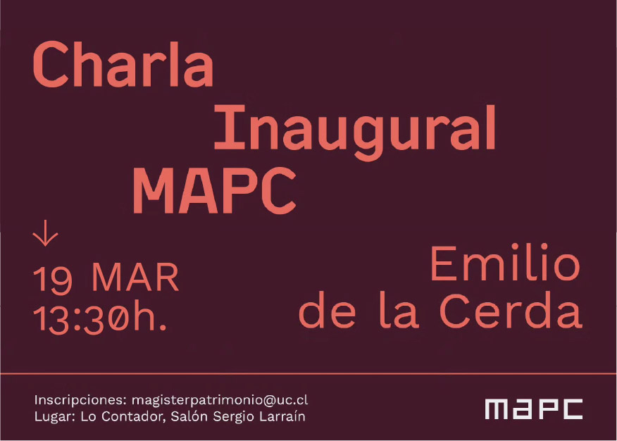 El Magíster en Patrimonio Cultural UC (MAPC) invita a la charla inaugural del programa para este 1er semestre 2026, a cargo del profesor ARQ UC Emilio De la Cerda.