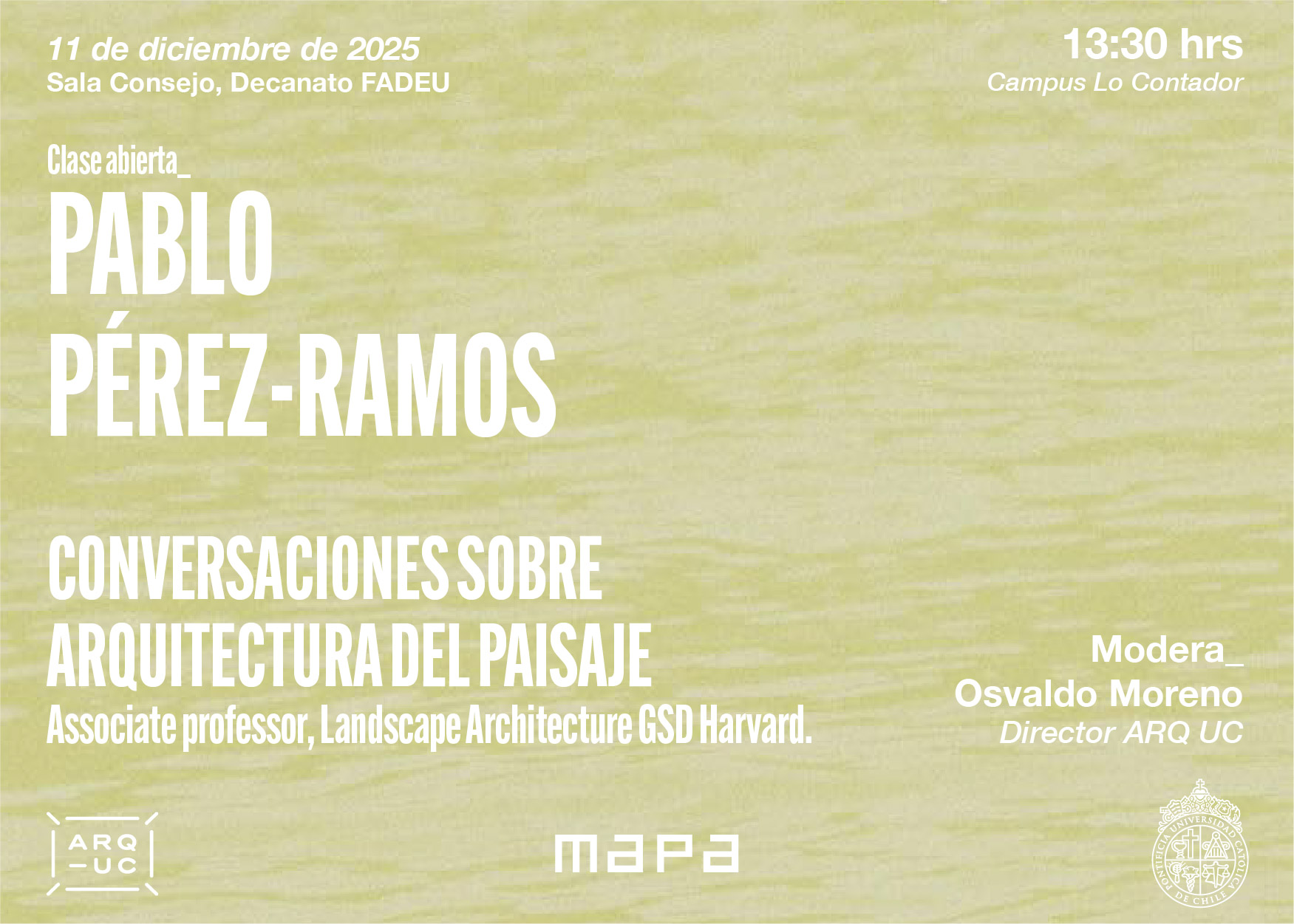 La Escuela de Arquitectura UC y el Magíster en Arquitectura del Paisaje UC (MAPA) invitan al conversatorio "Conversaciones sobre arquitectura del paisaje", con el profesor en Landscape Architectu...