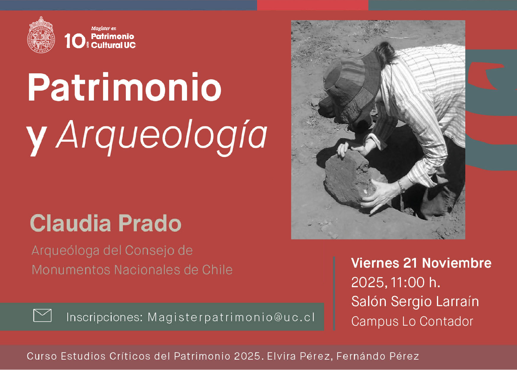 El Magíster en Patrimonio Cultural UC (MAPC) invita a la clase abierta "Patrimonio y Arqueología", a cargo de la arqueóloga del Consejo de Monumentos Nacionales de Chile Claudia Prado. ...