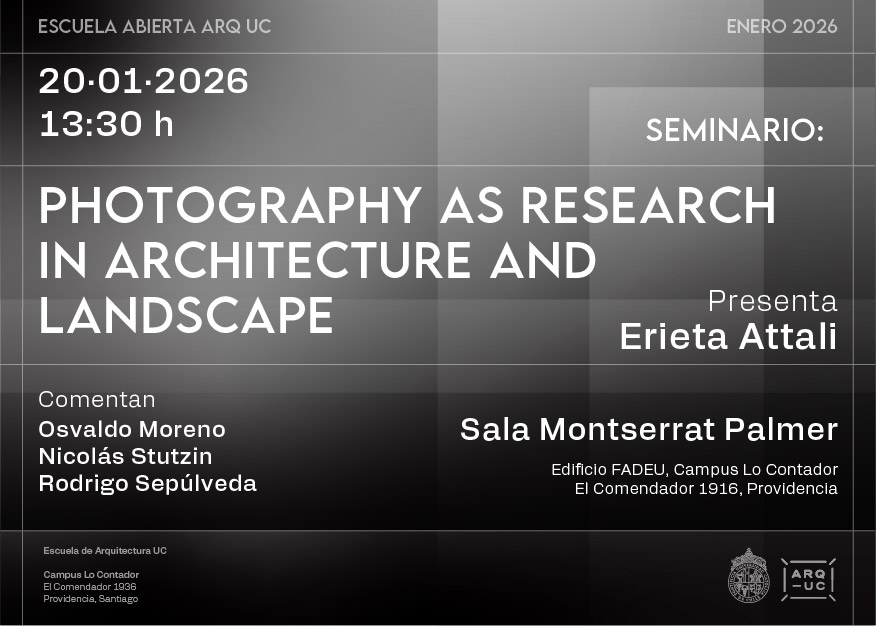 La Escuela de Arquitectura UC invita al seminario "Photography as Research in Architecture and Landscape", que contará con la presentación de la fotógrafa Erieta Attali en el marco de la Escuela Abier...