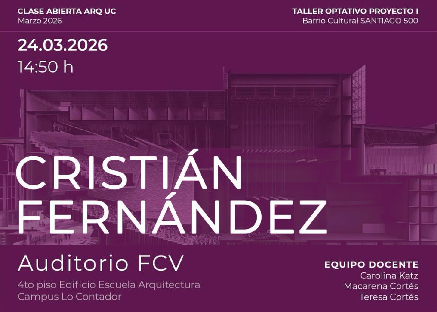 El Taller Optativo de Proyecto "Barrio Cultural Santiago 500" invita a la conferencia del arquitecto Cristián Fernández.