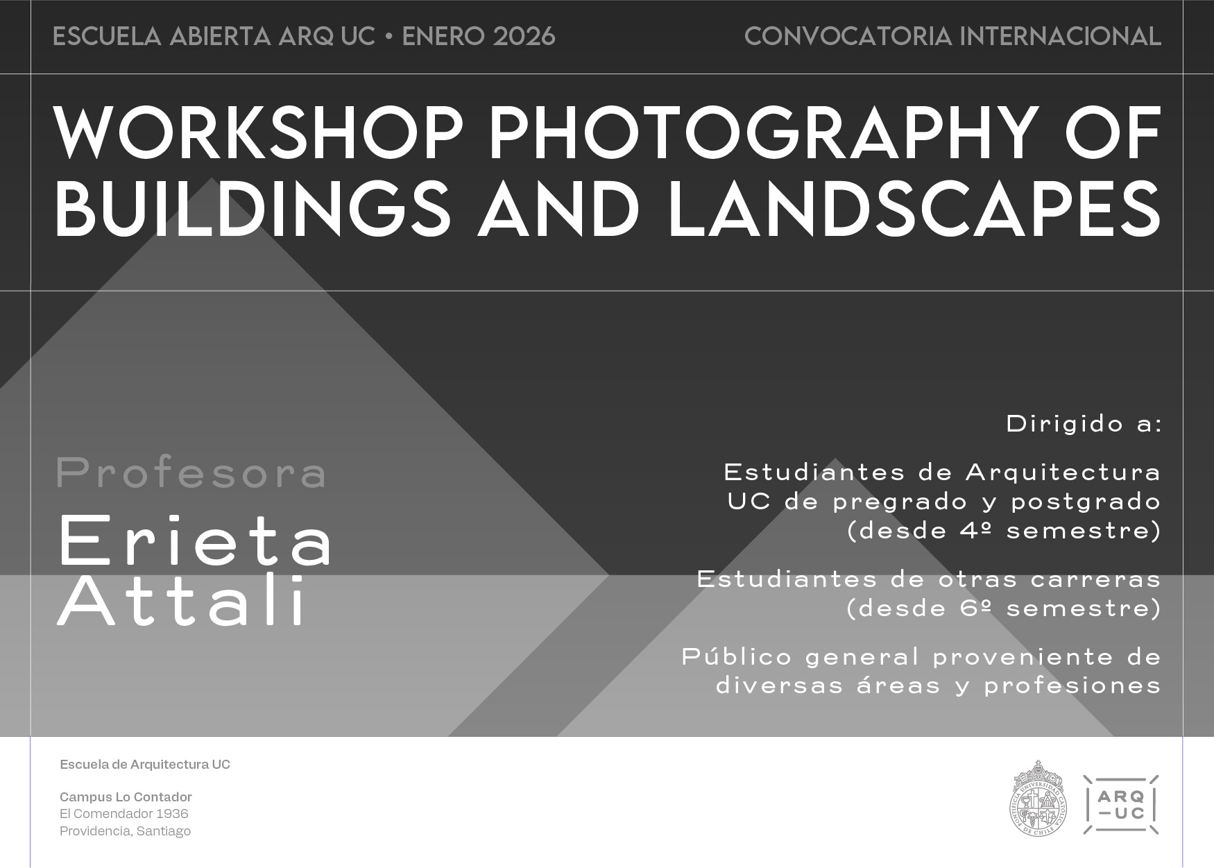 La Escuela de Arquitectura UC invita al "Taller de Diseño Avanzado", en el marco de la Escuela Abierta ARQ UC - Enero 2026.