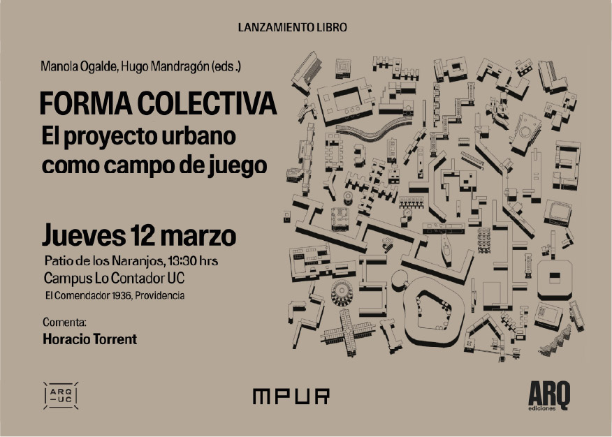 El Magíster en Proyecto Urbano UC (MPUR) junto a Ediciones ARQ invitan al lanzamiento del libro "Forma colectiva. El proyecto urbano como campo de juego", editado por los profesores ARQ UC Manola Ogal...